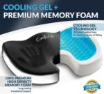 - Most Comfortable Gel Memory Foam Cushion On The Market – ComfiLife’s all-in-one features are unrivaled: Non-slip rubber bottom, built-in handle for easy transport and machine-washable zippered velour cover for easy cleaning. The ComfiLife Coccyx Cushion is the best gel memory foam seat cushion on the market made of premium quality durable memory foam with cool off gel layer on top for superior comfort